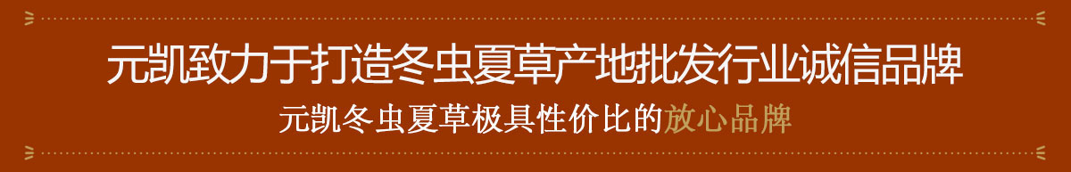 公司專業(yè)致力于青藏高原野生冬蟲夏草銷售、采收、精選包裝和現(xiàn)代化生產(chǎn)、研發(fā)等,并且在青海玉樹西藏那曲設(shè)立了采購站,專門采購地道的野生冬蟲夏草,充分保證了產(chǎn)品的品質(zhì)。元凱長期向國內(nèi)眾多著名藥材經(jīng)銷商、港澳臺以及東南亞中藥材采購商供應(yīng)冬蟲夏草,多次被省、市、縣授予多種榮譽(yù)稱號“青海省知名商標(biāo)”、“青海省誠信單位”、“青海省名優(yōu)企業(yè)”、“守合同重信用企業(yè)”等。